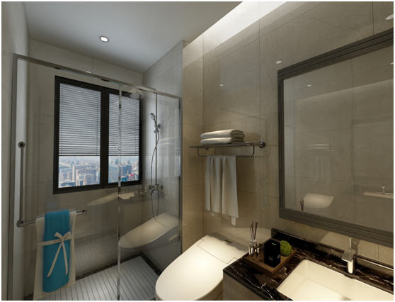 墙砖天花色泽澄净,风格统一,与淋浴间的透明玻璃隔断门一般,都对视觉产生了一定的延展,即便空间有限,也不会有压抑拥挤之感。