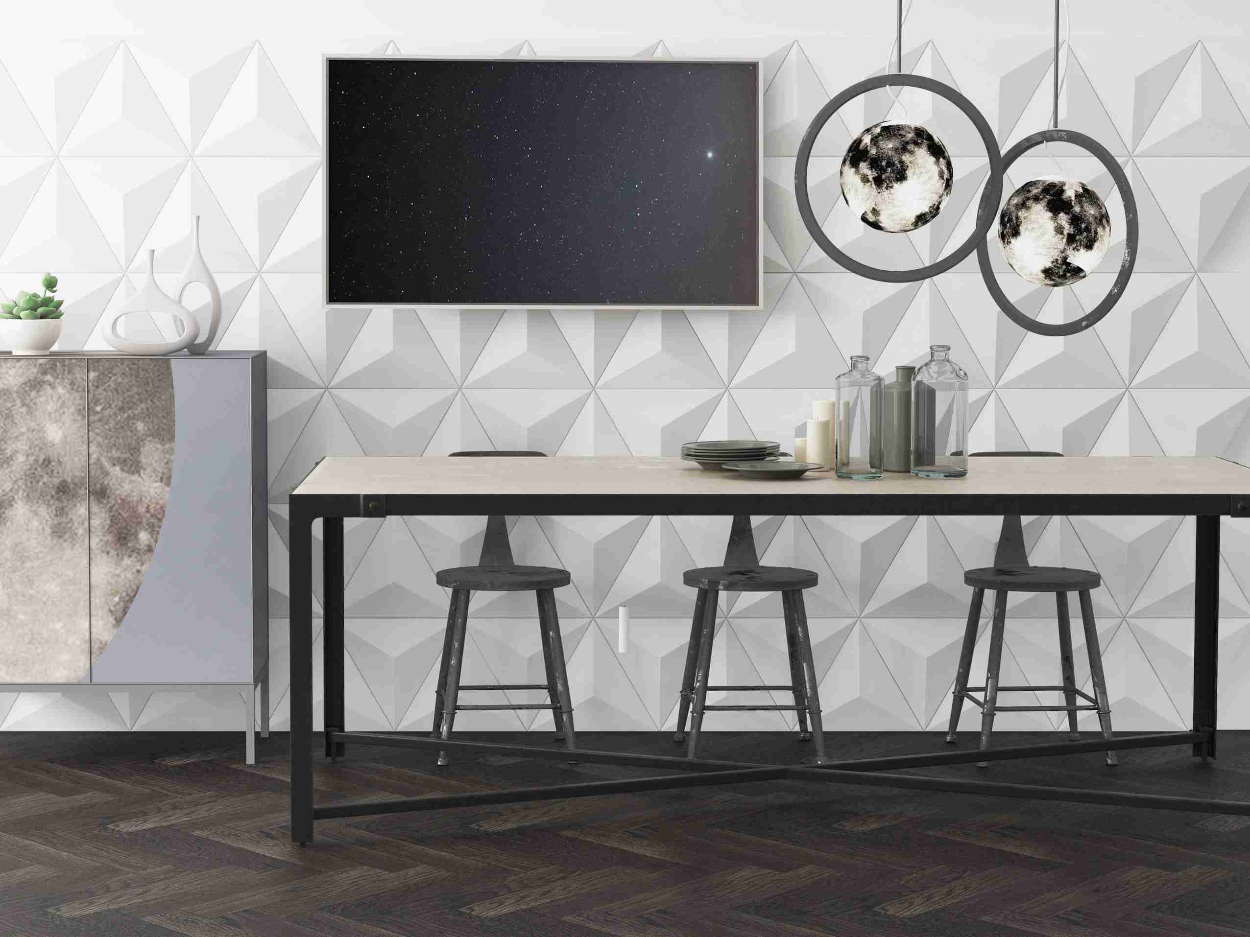 对空间角落进行布置,充分利用了房间中的每一寸面积,可以将之当做一个酒吧台可以围台而坐,方便交谈。这样的吧台设计看起来比较单薄,但是重在实用,有时候也可以当做小桌子放钥匙等小东西。当然转角位置会影响水电路布局,尤其是离管道或排水管较远的角落时,排水就成了一大难题。如果吧台位置离室外近,可以将排水管接到户外,以单独的管线排水。