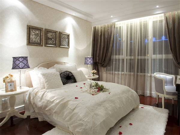 4、装饰品选购:部分用户喜欢装扮卧室,使其更加的温馨舒适,在放置家具后卧室的整体面积变小。建议在选用饰品时尽量选用壁挂式的饰品,既能起到较好的装饰作用,还能节约一定的空间,装饰品尽量选用与整个房间风格较为搭配的饰品,避免选用花哨的物件,以免影响休息。