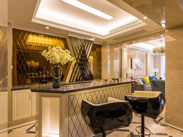2、吧台+酒柜。吧台尺寸规划好之后,在周围延伸设计出酒柜,下方也可设计成储物柜的模式。这类款式用在客厅和餐厅的隔断中较为合适,周围空间较多,朋友来也可一起娱乐聊天,总体实用性偏高。不使用的时候,可当做一个摆件台,用于花瓶、瓷器等摆放,添加室内的美观度。需注意,酒柜要做封闭式,若是嫌弃太难看,可加入玻璃打造出通透感。