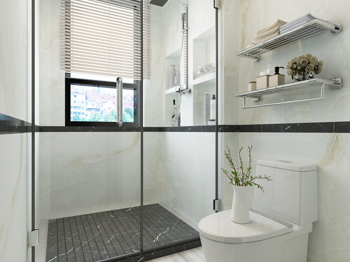卫生间是一个长期处于潮湿状态的地方,但是很很多人喜欢中式风格,会将房间内的门做成木门,但是卫生间的门不建议做木质门,因为它有一个特性是容易吸水,而且受潮会开裂,久而久之甚至会有发霉的情况,尤其是卫生间常常处于不通风的情况,所以还是不要用木门比较好,铝合金门、玻璃门都是不错的选择。
