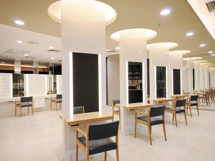 2、在装修美容院的时候,可以尽量采用一些隔断和屏风的装修模式来进行装修,如果可以再搭配一些个性的化妆品以及灯光,这样不仅可以使整个空间看起来更具有潮流时代性,而且还会给顾客带来一种美的享受。